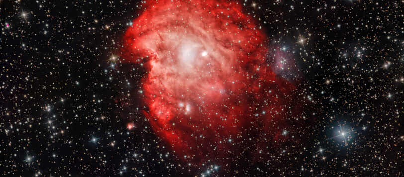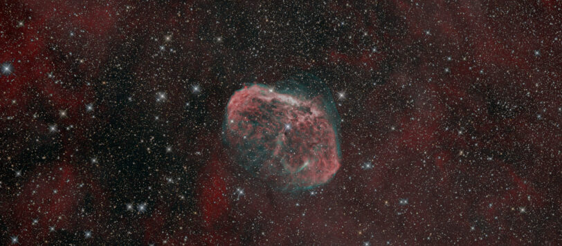 Sichelnebel – NGC 6888 Der Sichelnebel (NGC 6888) ist ein beeindruckender Emissionsnebel im Sternbild Schwan, auch bekannt als das ‘Kreuz des Nordens’. Seine charakteristische Form, die ihm den Namen ‘Crescent Nebula‘ einbrachte, verdankt er der gewaltigen Kraft eines massereichen Wolf-Rayet-Sterns in seinem Zentrum. Dessen starke Sternwinde prallen auf das umliegende interstellare Medium und lassen die […]